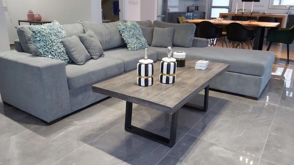 On entering the villa, you’ll immediately note the space and natural light that comes from the ground floor’s open plan design. The fully fitted kitchen with high-quality two tone cabinets has a matching breakfast bar for informal meals or food preparation. This leads into the formal dining area, again furnished with a dining table and chairs that continue the classic wood design of the kitchen units and breakfast bar.