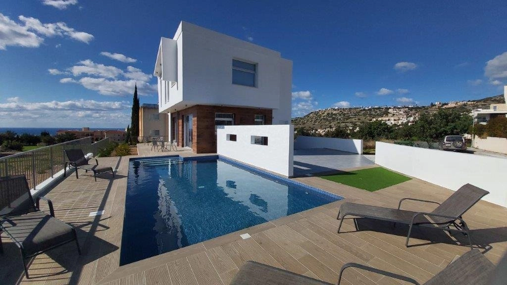 This Villa is a beautiful and unique three-bedroom villa located in the popular Peyia village. Built over a covered area of 195m2 in a 410m2 landscaped plot designed for easy maintenance, the villa has its own large pool and double private parking.