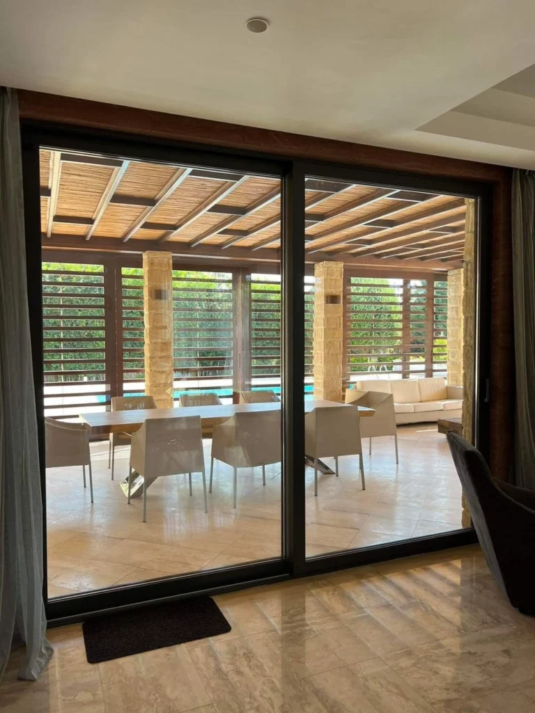 Two gated driveways on either side of the villa lead to the main entrance allowing for ample car parking. Upon entering the villa, one will notice the harmonious colors with the villa enjoying tremendous light through its many doors and windows. The villa offers amazing architecture, and this is visible throughout with its luxury fixtures and fittings.