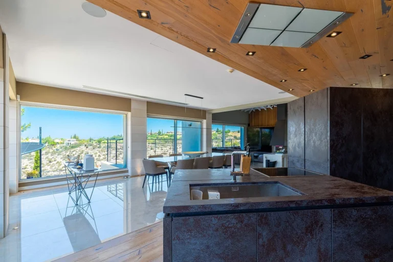 Stepping out of the living and dining areas through the wonderful large panoramic glass doors, one will notice the expansive gardens below that reflect traditional Cypriot landscaping, a very large swimming pool and a spacious BBQ area to accommodate large gatherings when socializing.