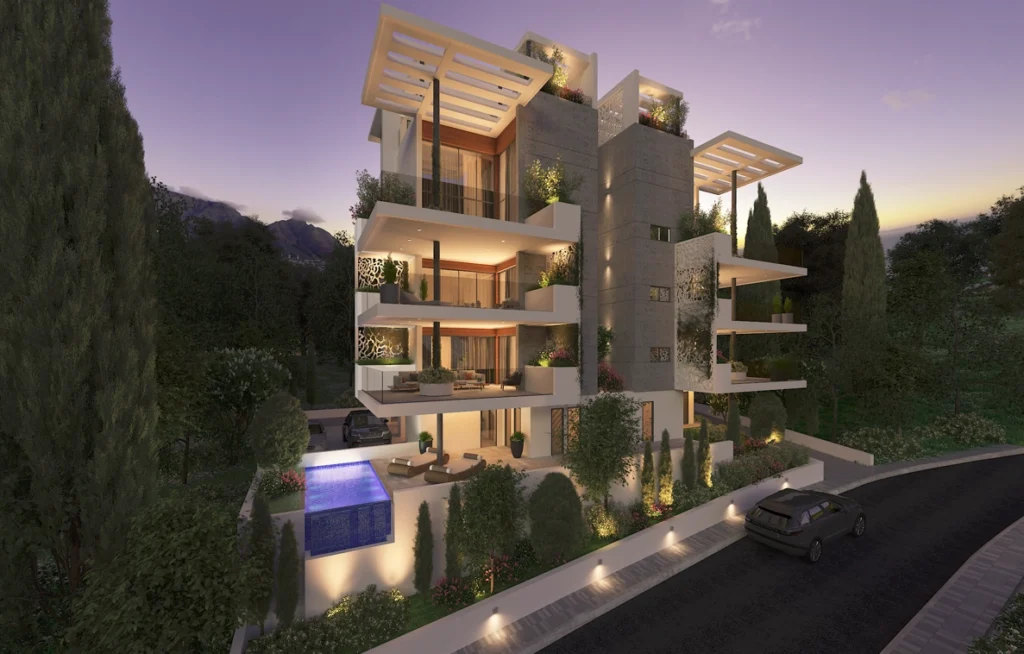 Located in the vibrant area of Germasogeia, just 4 minutes from the roundabout, this luxurious 2-bedroom, 2-bathroom apartment offers elegant living in a peaceful residential setting on a small hill, with unobstructed views of the sea and surrounding mountains.