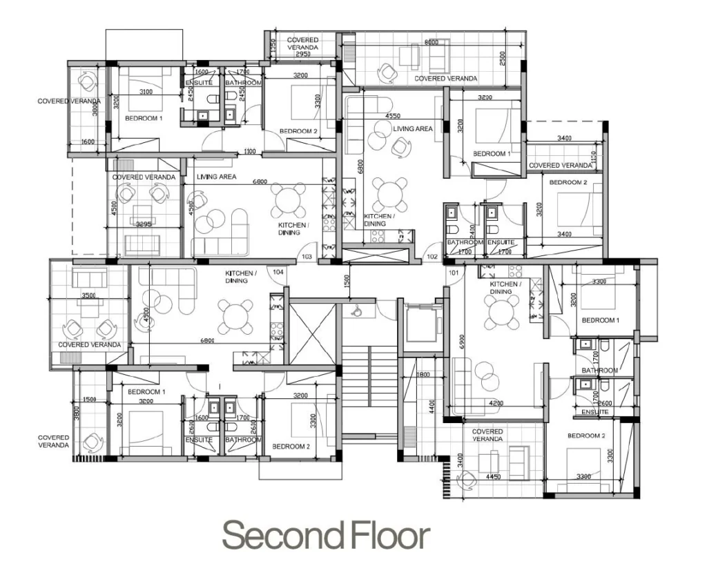 Each apartment features large balconies, extending the living spaceand providing a perfect spot for outdoor relaxation. The units comeequipped with advanced features, including a concealed VRV systemfor efficient cooling and heating. Elegantly designed with built-inkitchens and wardrobes, the apartments offer walk-in showers andwall-mounted toilets, combining practicality with modern luxury.