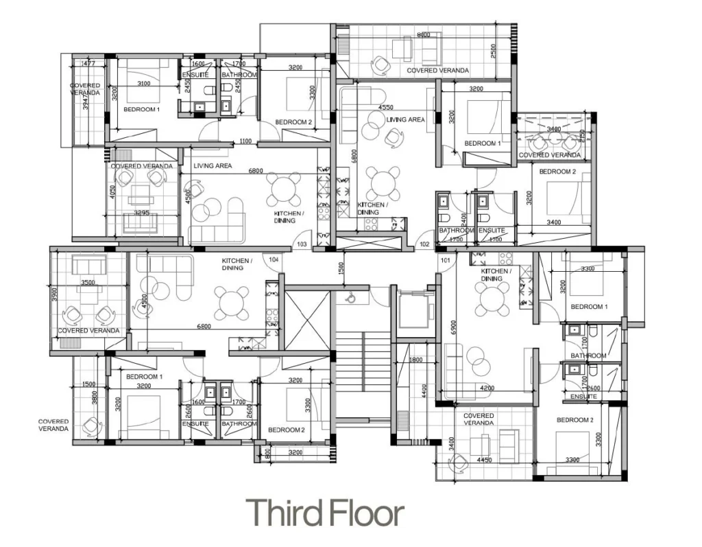 Each apartment features large balconies, extending the living spaceand providing a perfect spot for outdoor relaxation. The units comeequipped with advanced features, including a concealed VRV systemfor efficient cooling and heating. Elegantly designed with built-inkitchens and wardrobes, the apartments offer walk-in showers andwall-mounted toilets, combining practicality with modern luxury.