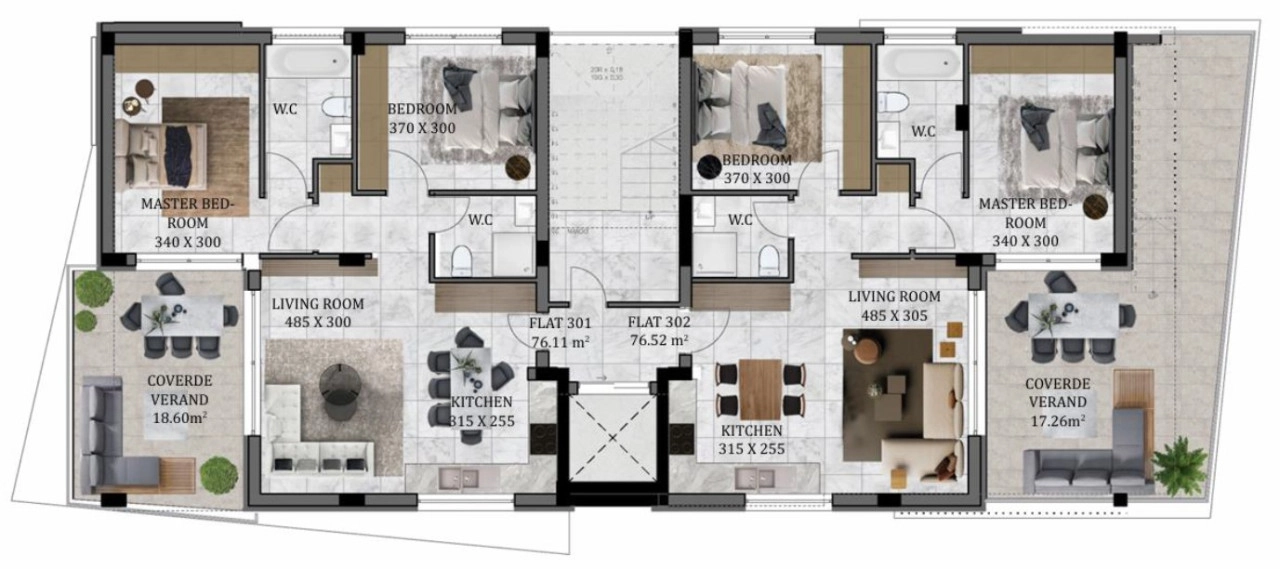 Each apartment boasts a smart layout, generous balconies, and high-quality finishes, with provisions for air conditioning and underfloor heating to ensure year-round comfort.