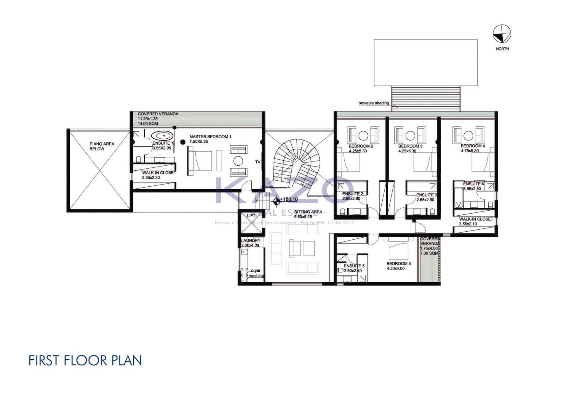 The villa features six spacious bedrooms and three modern bathrooms, providing plenty of room for families or guests. Highlights include a private basement, an in-home gym, and the convenience of an elevator connecting each floor.