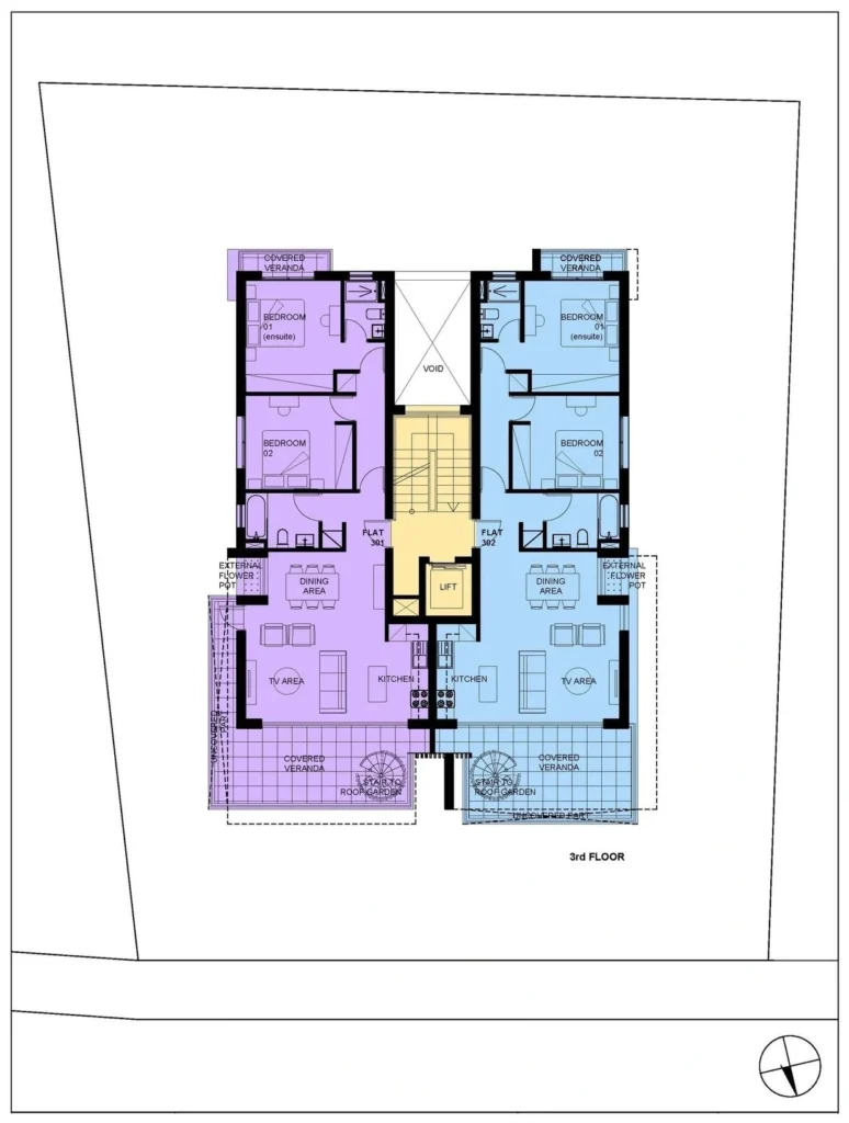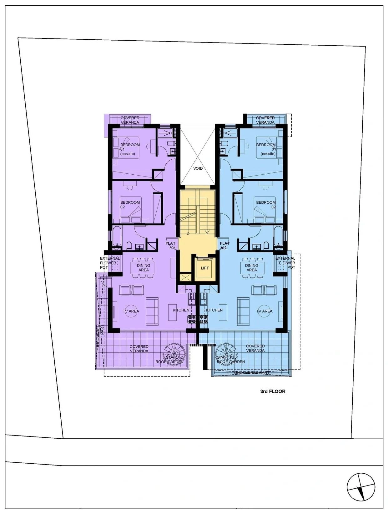 The project consists of 6 two-bedroom apartments. Each apartment has 2 parking spaces as well as its own storage room. Top quality materials, both structural and decorative, will provide its residents with the anticipated quality of life. The ample space of the apartments, the special features, the roof gardens and the big verandas give the comfort of a luxurious and relaxing living space in this attractive location of the city. All apartments have large balconies, ideal for enjoying the unobstructed views of Limassol.