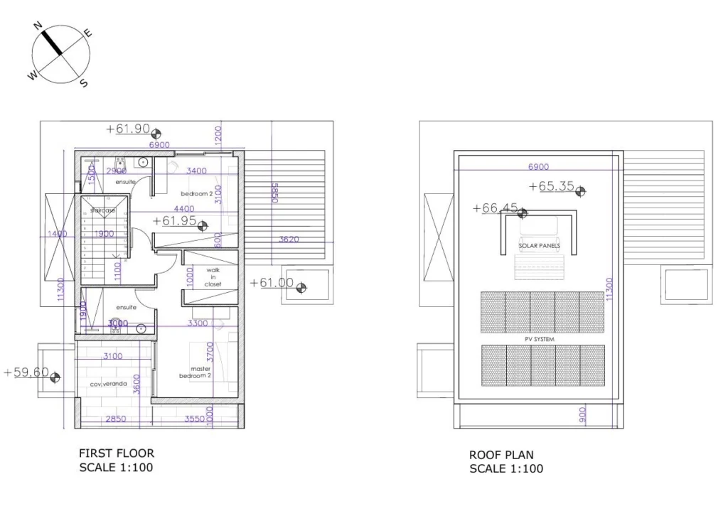 Each home features sleek open-plan living beneath 3.10 m high ceilings, with floor-to-ceiling glass doors flooding interiors with light. Premium amenities include underfloor heating zoned per floor, a VRV cooling system, full thermal insulation, and a photovoltaic system everything is included in the price. Optional private pools, expand outdoor living, while security systems, a water filtration setup, and walk-in showers elevate daily convenience. Outside, two-car parking with electric gates and a built-in BBQ area complete the picture.