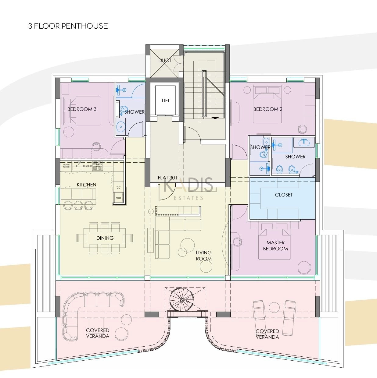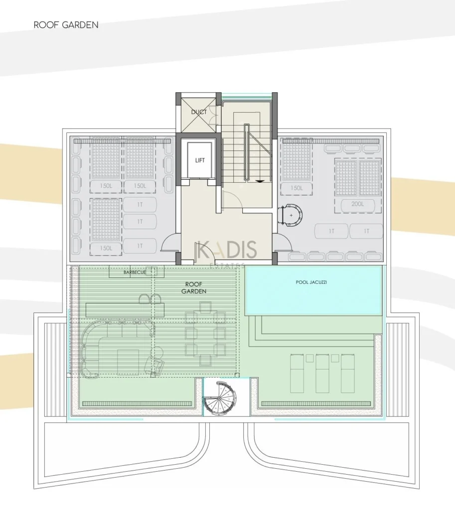 •1 Penthouse of 145 m2, featuring a spacious 60 m2 covered veranda and an exclusive 108 m2 private roof terrace with a swimming pool