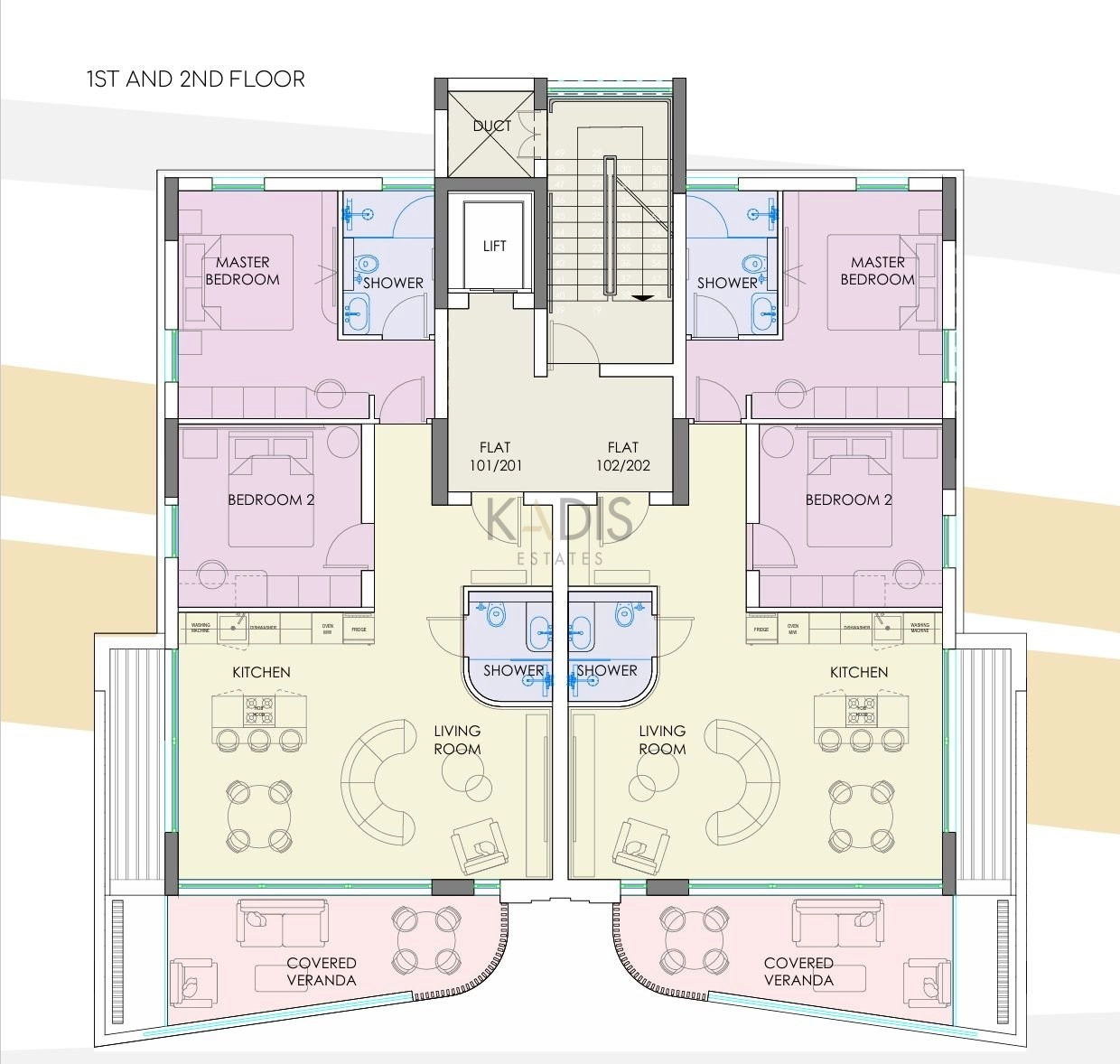 •4 stylish two-bedroom apartments of 88 m2, each complemented by 15 m2 covered verandas