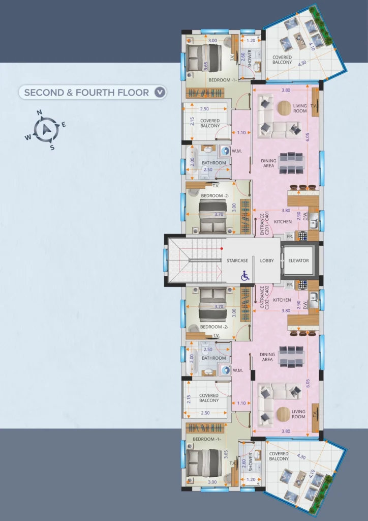 With only two apartments per floor, this residence ensures a high level of privacy and exclusivity. Residents will also benefit from: