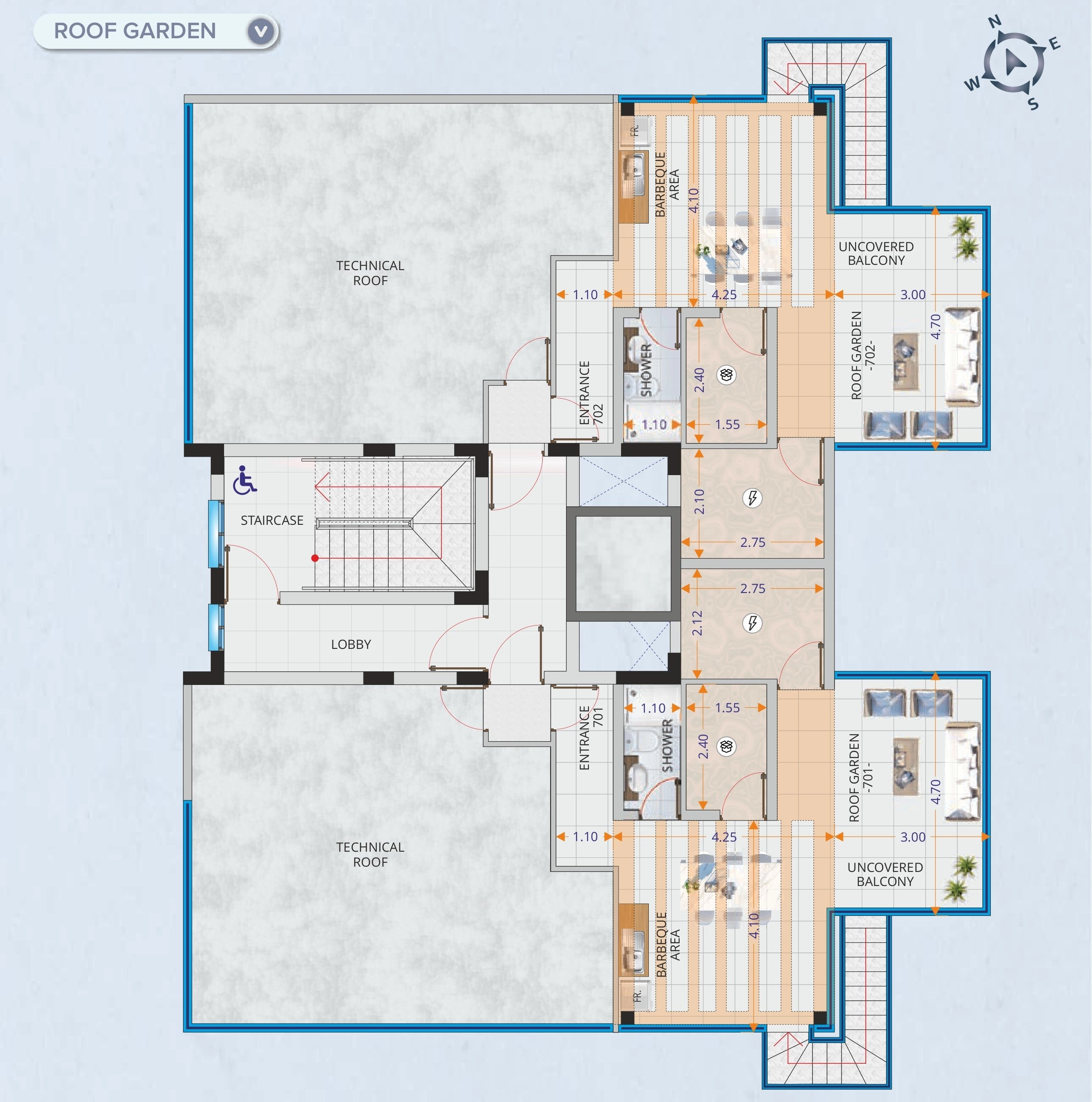 Positioned on the top floor of a stylish residential building, the penthouse features a spacious open-plan layout, premium Italian ceramic finishes, and expansive glass balconies. It is further enhanced by a private roof garden, perfect for relaxing or entertaining while enjoying stunning views of the surrounding upscale neighborhood.