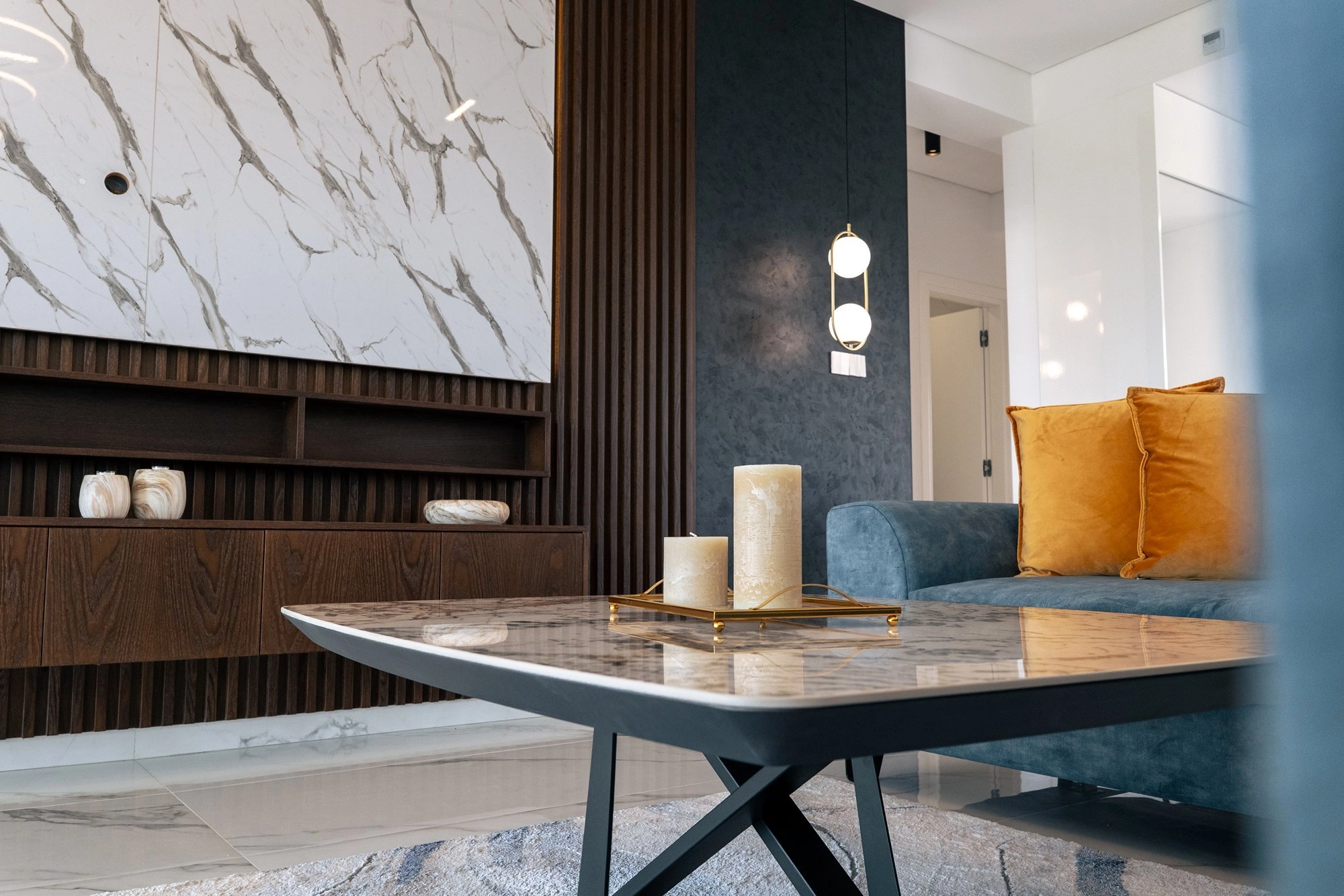 The three-bedroom apartment provides generous living spaces and refined design, perfectly suited for families or those who value both space and style. With three bedrooms and two bathrooms, the layout is crafted to combine practicality with luxury.