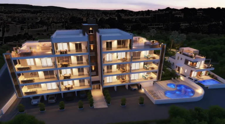 This modern 2-bedroom, 2-bathroom apartment is located on the 4th floor of a high-spec gated residence in a prime area of Kato Paphos. It offers spacious living areas, large sunny verandas with sea and park views, and elegant design throughout.