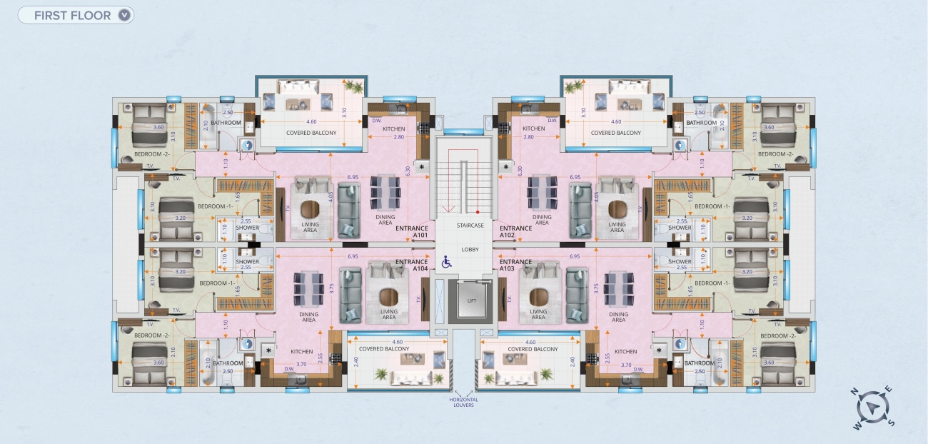 Situated on the first floor of a boutique development the apartment features a spacious open-plan layout, quality Italian ceramic finishes, and a private balcony. Unit include a dedicated parking space and a storage room on the ground level.