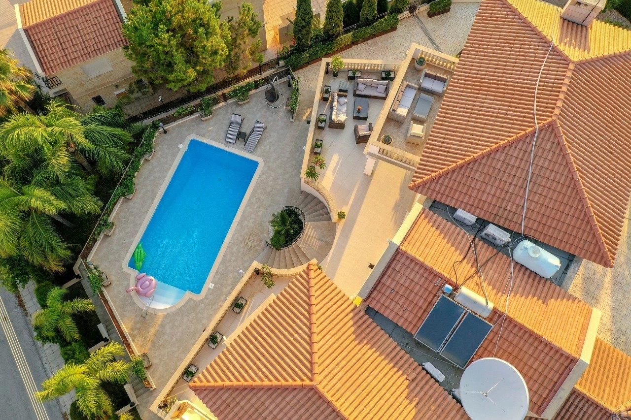 A spacious 600-square-meter villa with panoramic views of the sea and the residential areas of Limassol is located in the most prestigious area of Agios Tychonas, just minutes away from the beaches of the Amathus Beach and Four Seasons hotels.