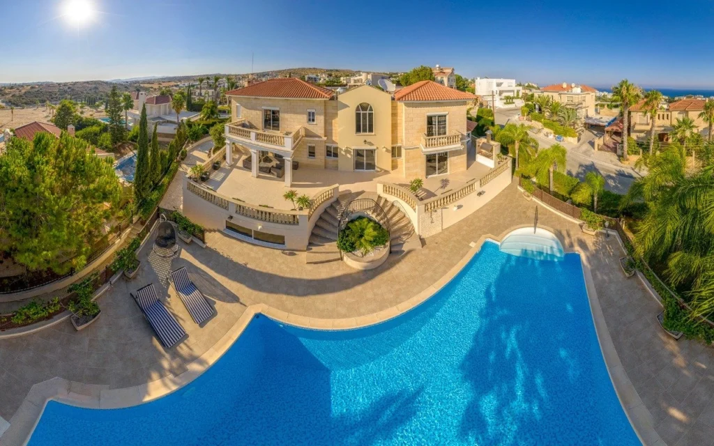 A spacious 600-square-meter villa with panoramic views of the sea and the residential areas of Limassol is located in the most prestigious area of Agios Tychonas, just minutes away from the beaches of the Amathus Beach and Four Seasons hotels.