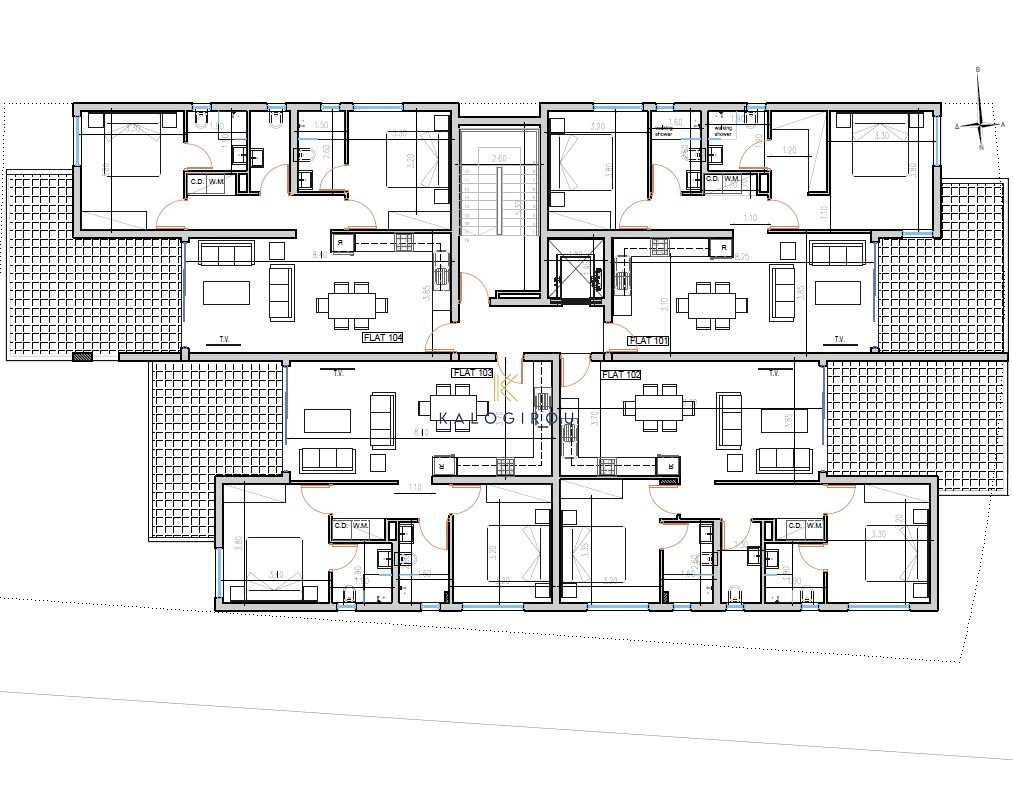 First floor apartment for sale in Larnaca, Mc Donald Drive Thru area. The apartment consists of an open plan kitchen, dining, living area, big covered veranda, guest wc, laundry station and two en suite bedrooms. Additionally, the apartment has right of use to a covered parking and storage room.