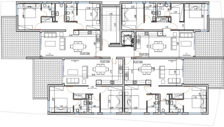 Third floor apartment for sale in Larnaca, Mc Donald Drive Thru area. It consists of a living, kitchen, dining area in an open plan space, two en suite bedrooms, big covered veranda, guest wc, laundry station, and a roof garden. Additionally, the property has right of use to a covered parking and storage.