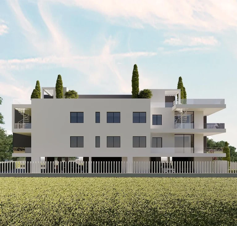 Apartment for sale in Livadia area, Larnaca. It is on the second floor & consists of an open plan kitchen, dining area, living room, a main shower room, two bedrooms-one of them en suite (shower), covered veranda and a spacious roof garden. The roof garden comprised of a veranda, a storage room and a shower room. In addition, the residents will have access to an allocated covered parking and a second storage room on the ground floor.