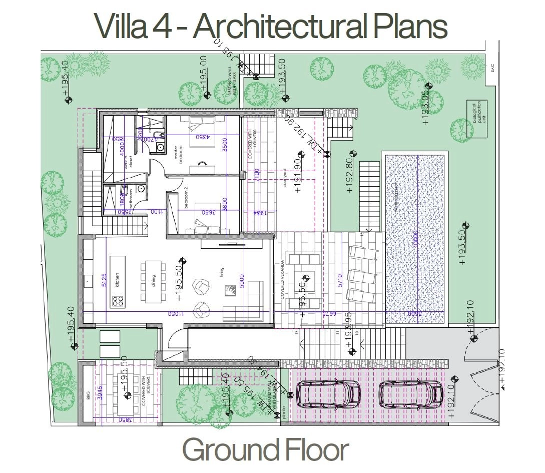 A four-bedroom, two-storey villa №4 with a private swimming pool, offering an internal area of 211 m², is situated on a 600 m² plot.