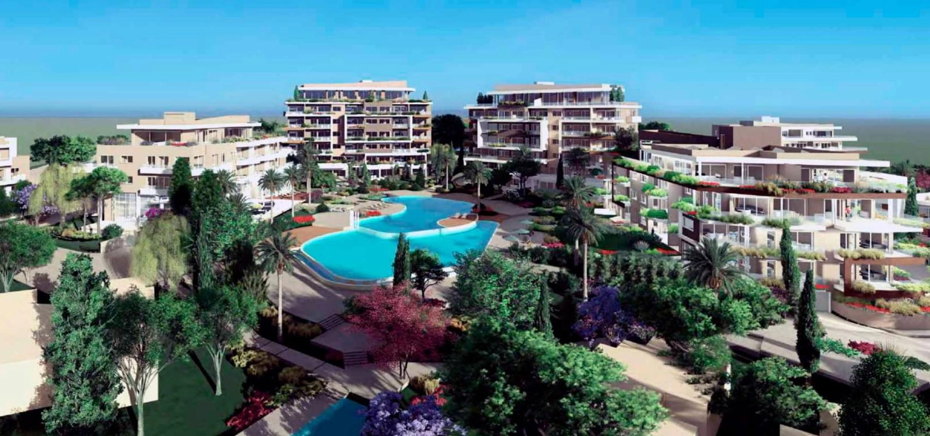 Apartments for sale in the area of Chlorakas, Paphos in a gated complex with a swimming pool, overlooking the sea and a 2-minute walk to the sea. There is a parking space for the car. The complex has a restaurant, a bar, a health club with a gym, a sauna, a steam bath, a beauty salon, an infinity pool overlooking the Mediterranean Sea, a tennis court, a children’s playground, as well as natural paths and trails.