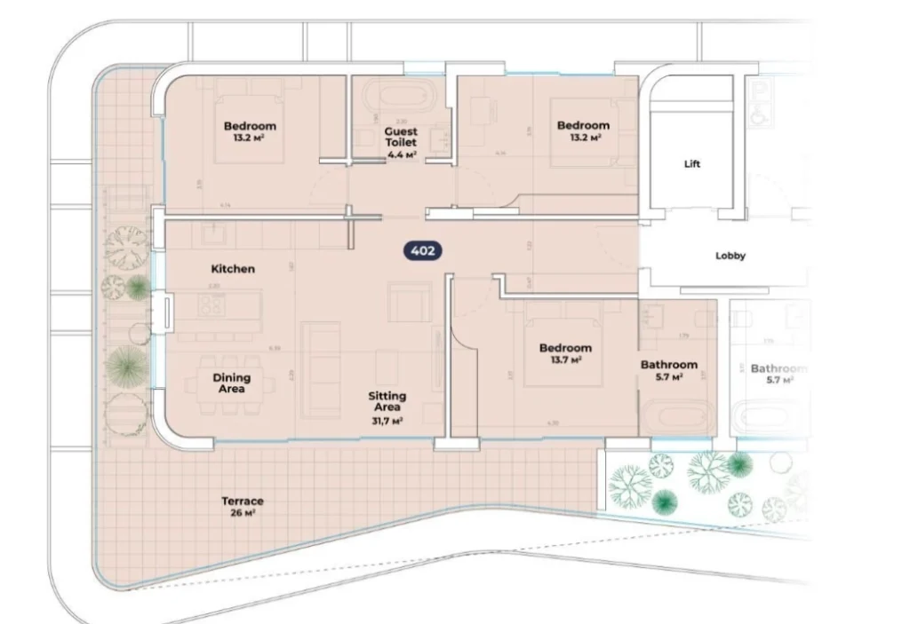 A modern project in the tourist area of Limassol. Located just 400 meters from the sea and close to many of the island’s best hotels, the project is surrounded by amenities, offering large covered verandas with sea views in all residences. The project consists of 8 magnificent apartments, including 2 penthouses with a private pool and a separate entrance. Key features of the project: 1 parking space for each apartment, a storage room, a penthouse with a private roof garden and a small 3x3m pool/Jacuzzi, provisions for VRV air conditioning, provisions for Underfloor heating.