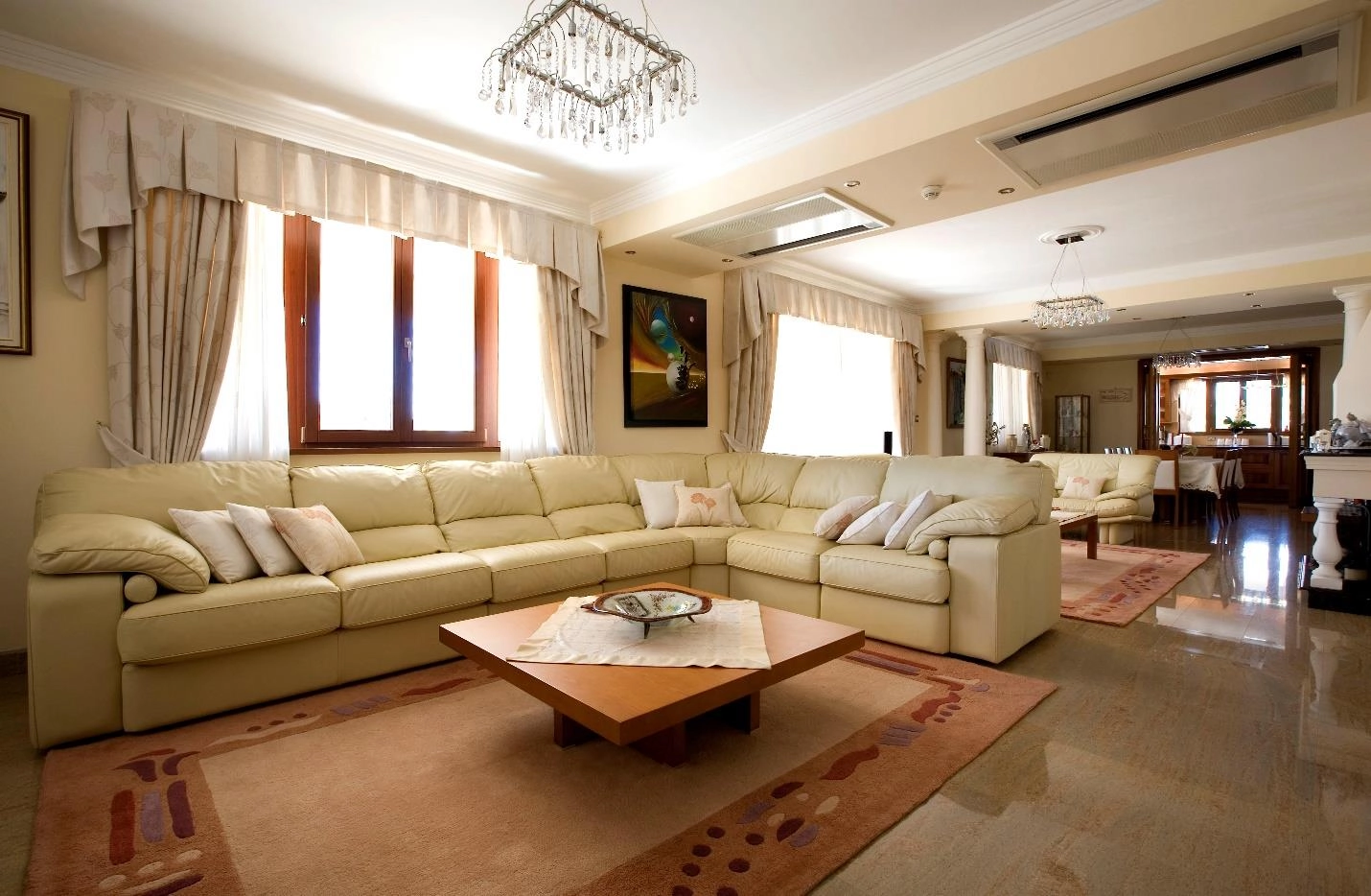 A villa with 8 bedrooms and a huge plot in a quiet, picturesque area of Mazotos is offered for sale. The villa is an exclusive property and is located on its own hill, which allows you to enjoy beautiful views of the sea, mountains and the surrounding local nature. The villa has spacious interior spaces, a beautifully decorated seating area on a covered terrace with a barbecue area. The main entrance to the villa is made of double oak doors that lead to the main hall with a central staircase. Double doors on the left lead to the living room, and to the right of the hall there is an elevator, as well as an entrance to a spacious bedroom/study/office, sauna, gym, laundry room and staff room. On the 1st floor there is an open central space surrounded by four bedrooms, a large family bathroom, a bar and several small utility rooms, all of which are accessed through the central space. On the top floor of the house there is a large game room, which can be reached by stairs and an elevator. The villa is equipped with many additional amenities: underfloor heating, Daikin air conditioning system, CCTV cameras, alarm system and many others. The villa has a swimming pool with a relaxation area, a tennis court that can be used as a mini football field, as well as a golf course, a private fishing lake, a garden and parking. The villa is located close to the road, which allows you to quickly reach other cities and locations.