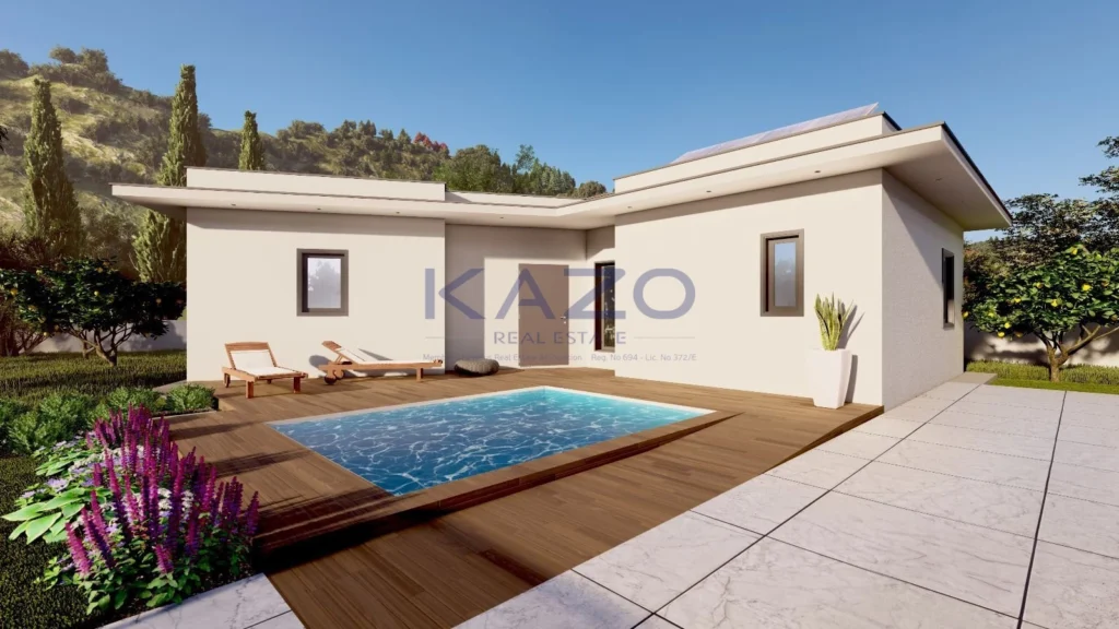 For sale: Off-plan modern bungalow in the beautiful village of Apsiou. This bungalow offers a total internal space of 95 m2, thoughtfully designed for comfort and convenience. The property features two spacious bedrooms and two contemporary bathrooms, perfect for couples, small families, or those seeking a peaceful retreat.