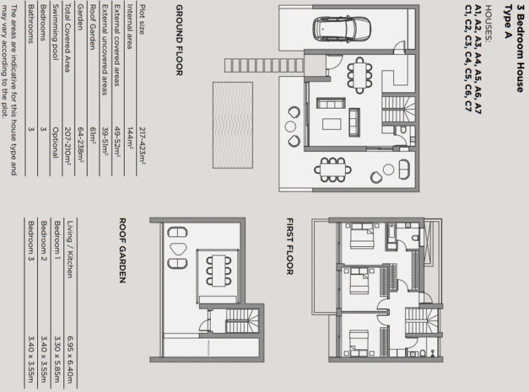 This beautifully crafted three-bedroom home offers spacious interiors and exceptional outdoor living in a private, gated hillside community above Limassol. The ground floor features open-concept living and dining areas with direct access to a private garden or terrace, while upstairs, the bedrooms provide peaceful retreats with scenic views.