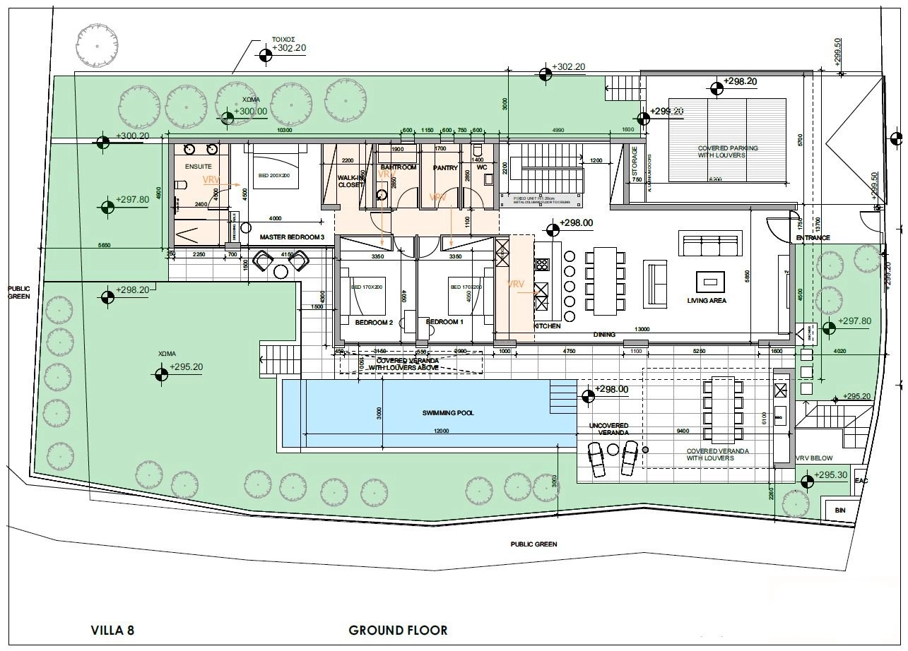 Our project specification and pricing package includes a 10.1 kW photovoltaic system with high-output solar panels for renewable energy autonomy, electric curtain provisions in every room for effortless ambience control, and private parking with an electric gate and EV charger for two vehicles. Advanced security integrates an alarm, high-resolution cameras and a reinforced entrance lock. Comfort comes from underfloor heating powered by a heat pump and a concealed VRV cooling system, complemented by lofty ceilings and tall doors. The open-plan living, dining and kitchen area flows to an outdoor kitchen and barbecue space, with dedicated laundry, storage and plant rooms. All residences achieve Energy Efficiency Category A+.