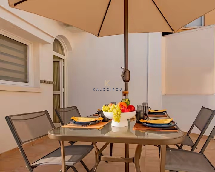 Double storey house for sale in Larnaca, Dekeleia area. Internal covered area of the house is 67 sqm. The ground floor consists of an open plan living, dining, kitchen area, spacious verandas and a guest toilet under the stairs. Internal stairs lead to the first floor and on the terrace. On the first floor there is a main bathroom and 2 bedrooms, one of them with veranda access. On the roof there is small space which can be used as a sitting area and a terrace/uncovered veranda. Moreover, the house has exclusive right of use to a parking and store rooms on the basement. The property also includes a separate one-bedroom apartment that is being rented out for €500 per month, while the house is rented for short – term, which makes it an excellent investment opportunity.