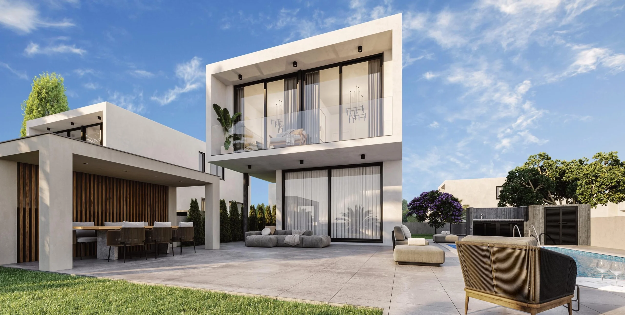 Villa for sale with three spacious bedrooms. The complex consists of 15 villas located at the foot of the hills of the lower part of Chlorakas, Paphos with beautiful sea views. Each villa is built using high-quality materials and has luxurious finishes around the perimeter. The project includes an open-plan living room and kitchen and a covered veranda. The villas are located on large plots with a private pool.The area has all the necessary infrastructure, ranging from large chain supermarkets and expensive restaurants, to medical centers, veterinary clinics, bank offices and others. There is a paved boardwalk with observation decks and electric lighting along the coastline. It is also home to one of the most popular beaches in St. George Beach.