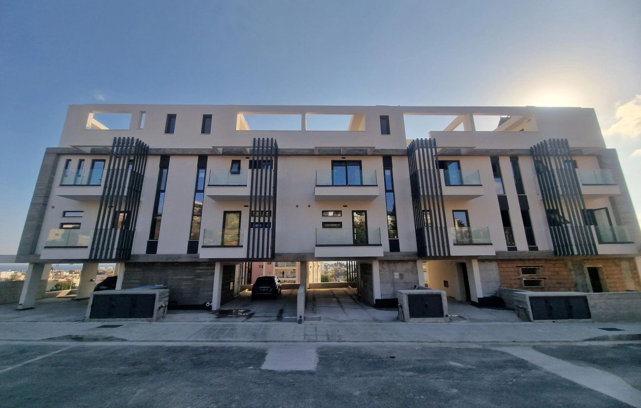 For sale 2 bedroom duplex apartment in Geroskipou. The apartment has its own parking and a roof terrace. The windows offer panoramic views of the sea and the city.