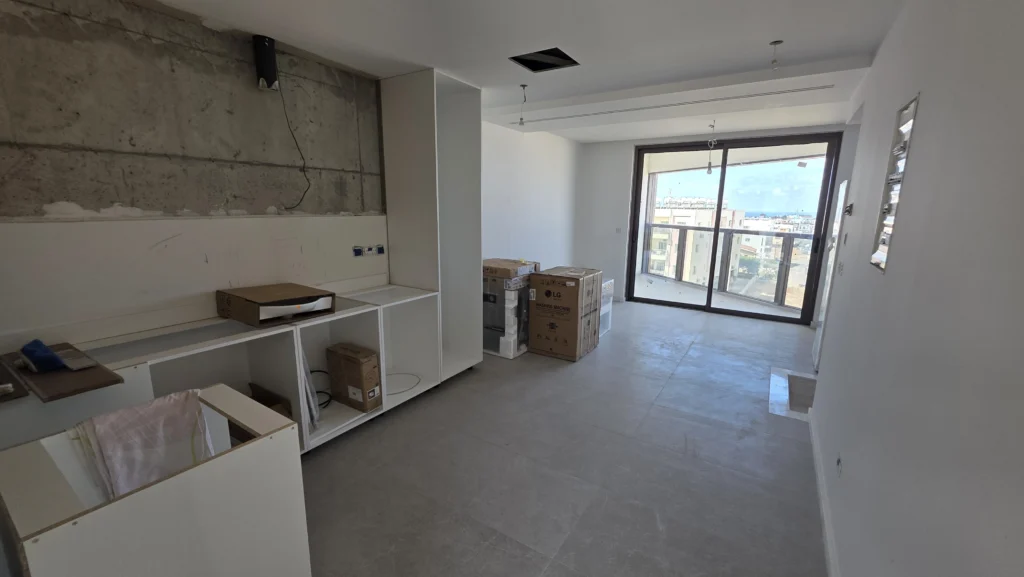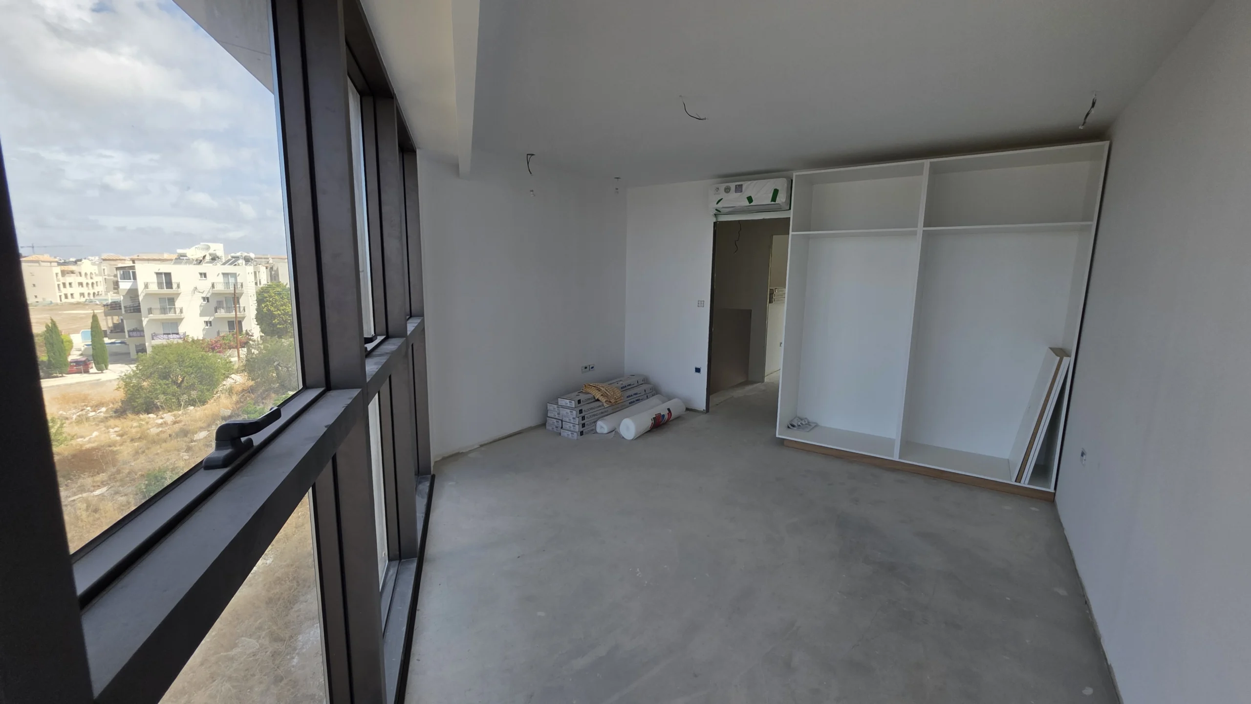 For sale 2 bedroom duplex apartment in Geroskipou. The apartment has its own parking and a roof terrace. The windows offer panoramic views of the sea and the city.