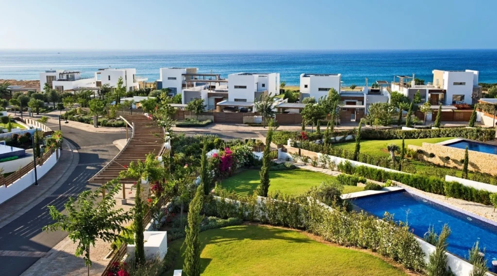 Reference ID: #SA29511Price details: €1,370,000 +VATVilla is located in the most beautiful part of the island near the Akamas Peninsula. A private haven of outdoor beauty and indoor luxury, with undisturbed views of sparkling blue sea and boundless sky. Characterised by fresh air and sunlight, the spacious homes are set within exceptionally large, fully landscaped plots, all with distinctive designs, floor to ceiling windows and large terraces. Interiors combine contemporary elegance with traditional Cypriot simplicity, to create a style seamlessly reflecting the natural Mediterranean way of life.The most premium and serene beachfront villas in Cyprus, near the Akamas Peninsula.Located in the most beautiful and unspoilt part of country.A luxury gated community.800m from the 5 star Anassa Hotel.5% return guaranteed, for 5 years.Covered area 246 sq.m.Covered veranda 30 sq.m.Plot size 644 sq.m.Uncovered terraces 120 sq.m.Roof garden 60 sq.m.PLUS V.A.T