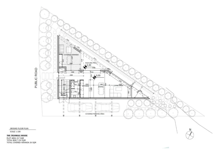 Luxury three-bedroom villa for sale, located in the prestigious Tomb of the Kings area. Featuring iconic triangular architecture and first-class technical features, this villa is changing the way we think about modern coastal life. Just a short walk from first-class amenities including shops, fine dining, private schools and the famous Venus Beach, Triangle House Hotel organically combines convenience and elegance. On the ground floor there is a spacious living and dining area, a stylish and modern kitchen, a guest bathroom and a separate utility room. A distinctive feature is the stunning swimming pool, which gracefully extends from the covered veranda to the living area, creating harmony both inside and outside. Upstairs you will find two spacious bedrooms with a shared bathroom, including a luxurious master bedroom with a private bathroom.The project specification includes the following features, all of which are included in the price: underfloor heating and separate areas on each floor. VRV cooling system, providing efficient and customizable climate control. High ceilings of 3.10 m and high doors of 2.40 m in all rooms. 5.2K photovoltaic system with solar panels. The pool is included in the price. Full thermal insulation, energy-efficient thin aluminum, providing energy efficiency category A. Security system with alarm system and video surveillance with 4 cameras. Water pressure system and water filter under kitchen cabinets. The bathrooms are equipped with comfortable shower cabins, safety glass and hanging toilets. Private parking for 2 cars with electric gate and electric car charger. A barbecue area at the kitchen level with a place for outdoor entertainment.