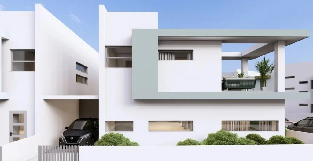 Villa for sale in the area of Agioi Trimithias. This complex offers 12 elegant two-storey houses, in which modern design perfectly combines with the tranquility of rural life. The metal-framed house has two levels, an open-plan kitchen and living room, three bedrooms, covered and open terraces, and a balcony. The total land area of the complex is 4238 m2.