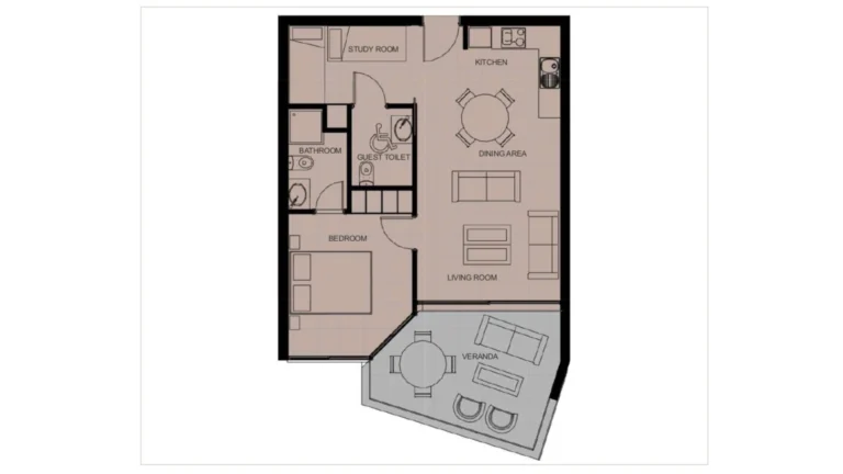 This elegant residence offers a perfect blend of comfort and practicality. A bright open-plan living area connects seamlessly with the modern kitchen, creating a functional yet stylish interior. Floor-to-ceiling windows bring in ample natural light, while the private veranda provides the ideal spot to relax outdoors. The bedroom is well-proportioned and peaceful, designed for total relaxation.