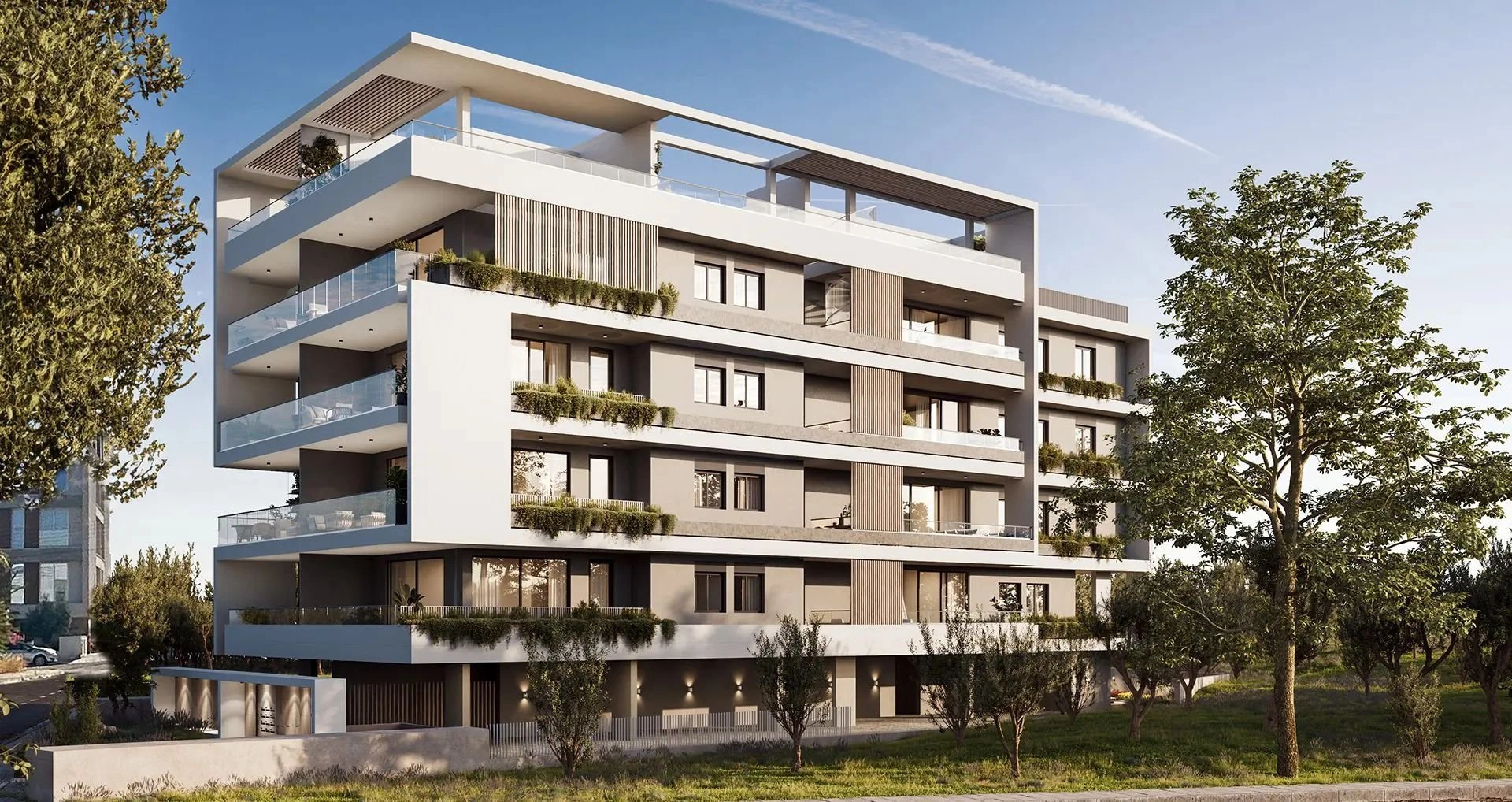 This is a residential building designed to blend modernity with timeless sophistication. Located in Limassol’s prime area, Agios Athanasios, it offers convenience and prestige with easy access to main roads and city amenities. It features 12 luxurious 2- and 3-bedroom apartments in a stylish setting that stands the test of time. Relax and enjoy outdoor living by the communal pool area, surrounded by lush greenery.