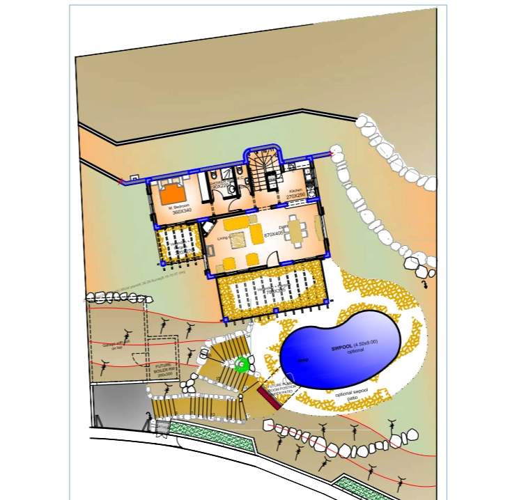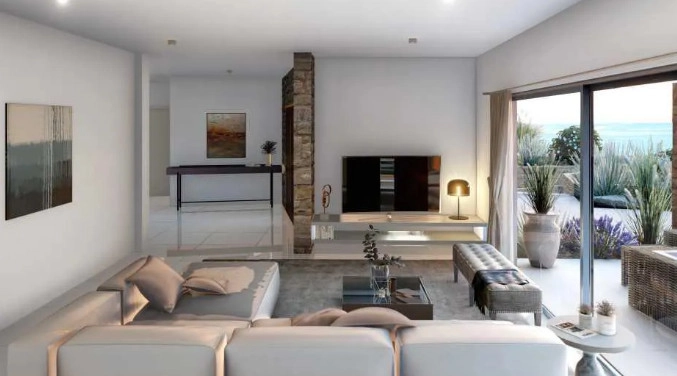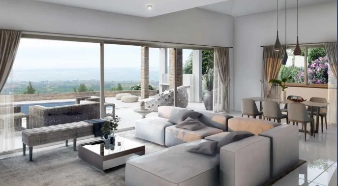 A unique 3 bedroom villa for sale in a fantastic location in Kamares, Paphos (Tala) and with wonderful views. The house includes a large living room, a veranda and a private garden. The real estate developer has carefully selected one of the best locations in Cyprus for the construction of exclusive and luxurious individual bungalows, duplex and two-storey houses. The villa has its own original architecture, and the thoughtful interior and exterior blend harmoniously with the surrounding nature. The use of stone, wood, and arches is typical of the landscape, while pools, barbecues, sun terraces, and even private tennis courts add luxury to the Mediterranean outdoor lifestyle. Restaurant. Lagoon-shaped outdoor pool. Tennis courts. 24-hour emergency center. A venue for private events.