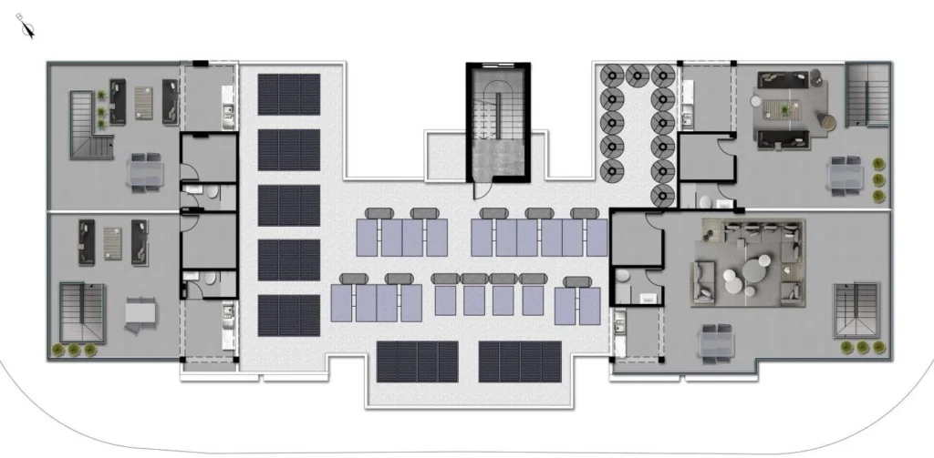 Located in a quiet residential area of Aradippou, just 5 minutes from Metropolis Mall with easy access to the Nicosia and Limassol highways, this stylish second-floor penthouse offers modern living in a prime location.