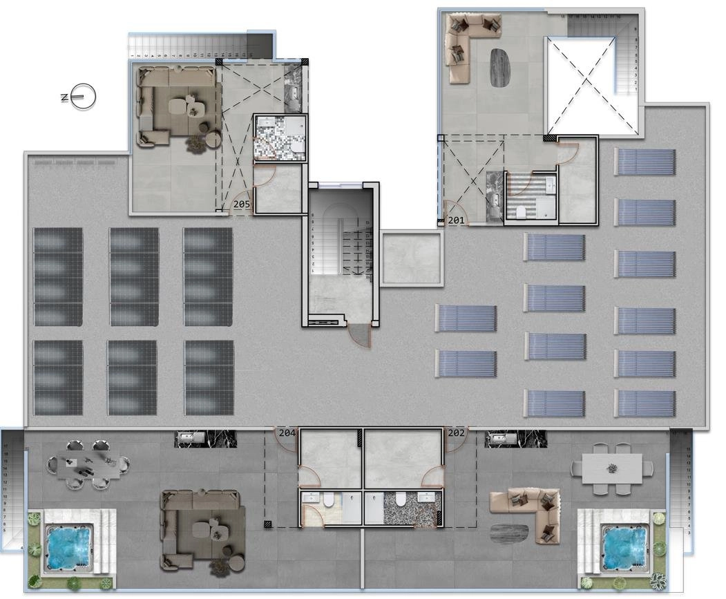 This elegant two-bedroom penthouse is part of a modern residential development located in the peaceful Aradippou area of Larnaka. Designed for comfort, style, and convenience, the penthouse offers spacious interiors, a private roof garden, and contemporary finishes throughout.