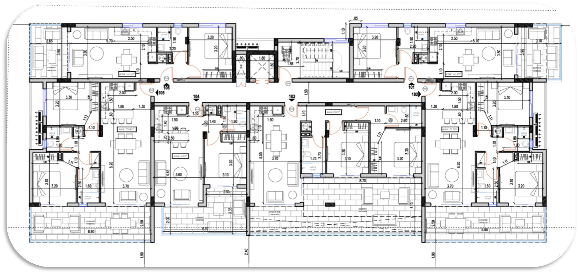 Each apartment features a spacious layout with generous verandas, ensuite walk-in showers, and elegant granite kitchen countertops. Built with energy efficiency in mind (Class A), the apartments are fitted with double-glazed thermal aluminum windows, video intercom systems, and provisions for air-conditioning and electric vehicle charging.