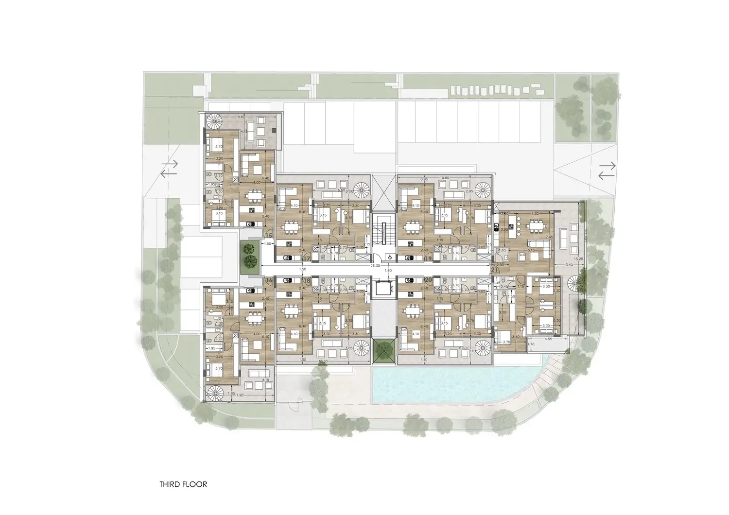 ✔ Private roof gardens for top-floor apartments