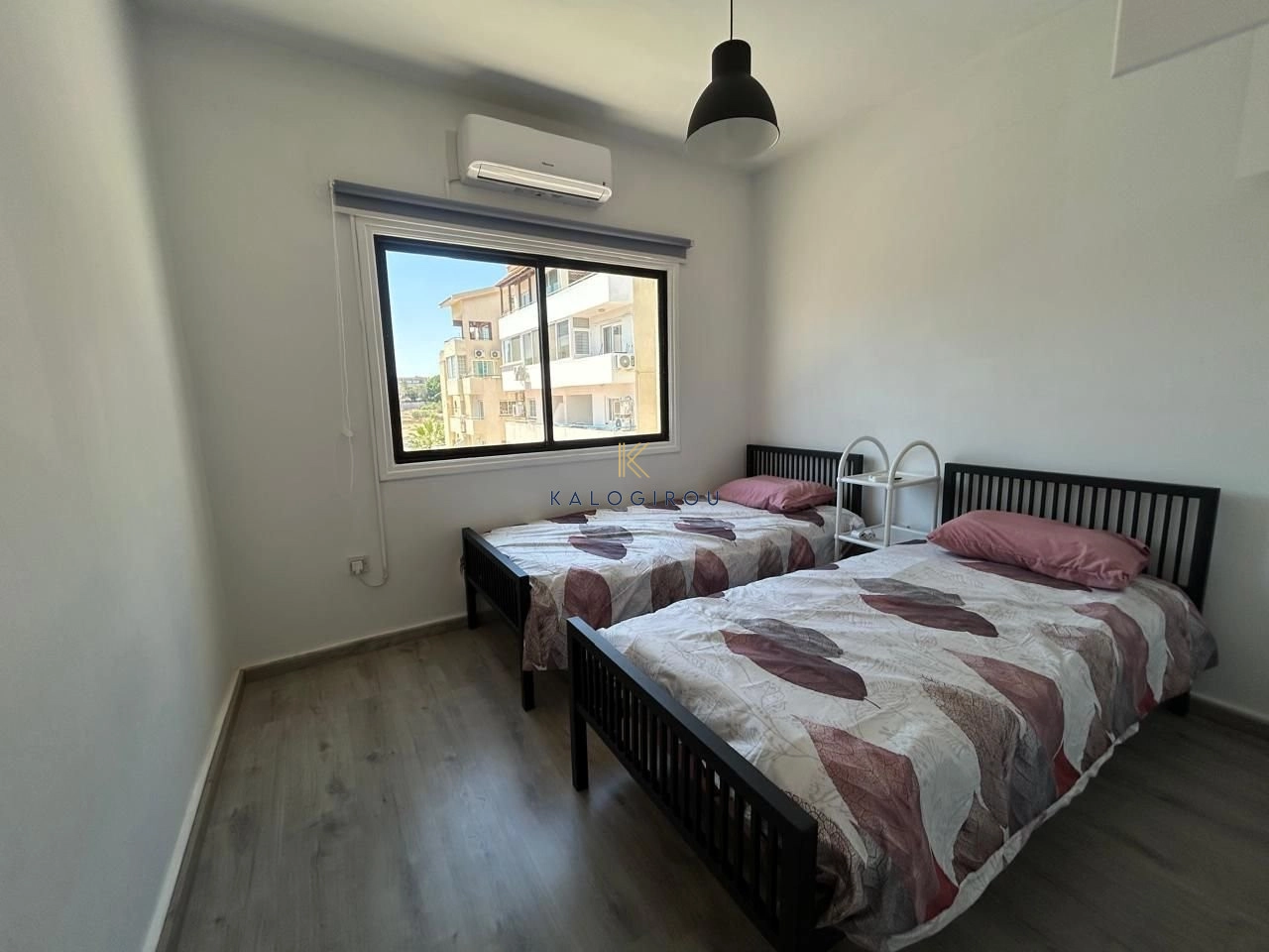 Two-bedroom Apartment for sale in Makenzy area, Larnaca. The property is fully furnished consists of a separate kitchen, a living room, two bedrooms, common bathroom with W.C electrical appliances, A/C,, appliances, covered parking.