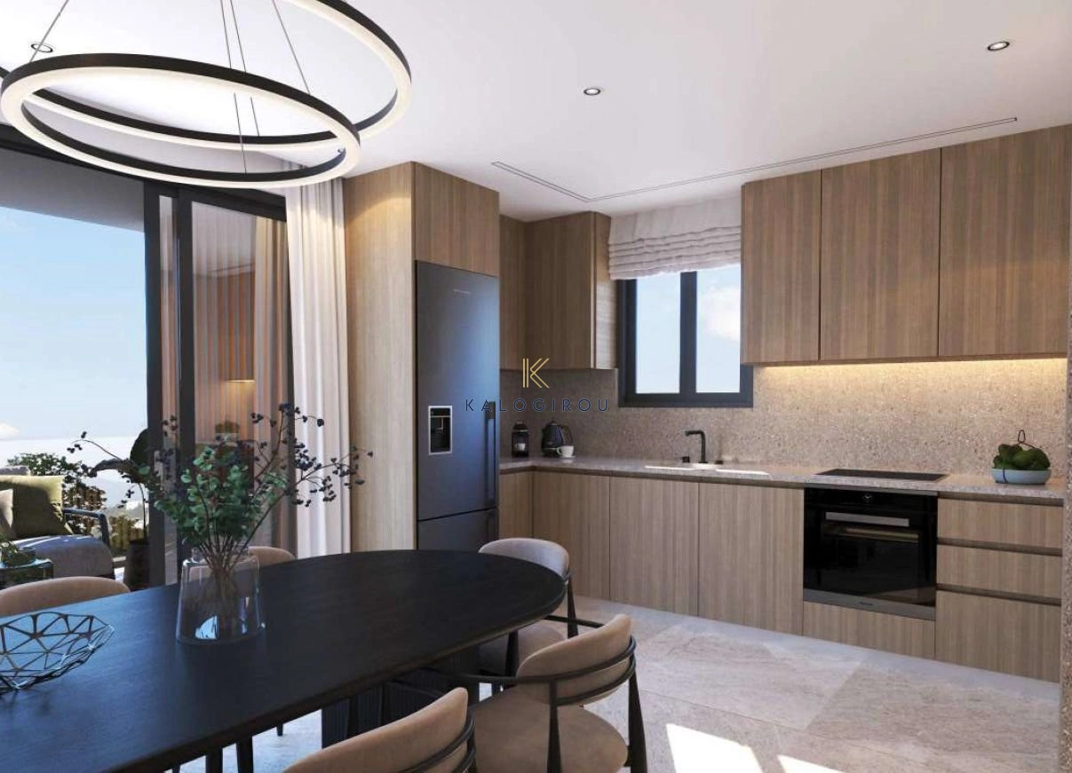 Apartment for sale in Kiti Area, Larnaca. It consists of a living, kitchen, dining area in an open layout, a main shower room, two bedrooms, en suite (shower) master bedroom and covered veranda. The residents have also access to a private covered parking space on the ground level.