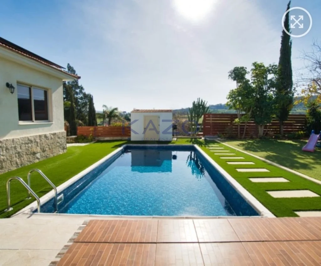 This house sits on a large plot, offering privacy and a spacious outdoor area. The highlight of the property is the private swimming pool, perfect for relaxing or entertaining during the warm months.
