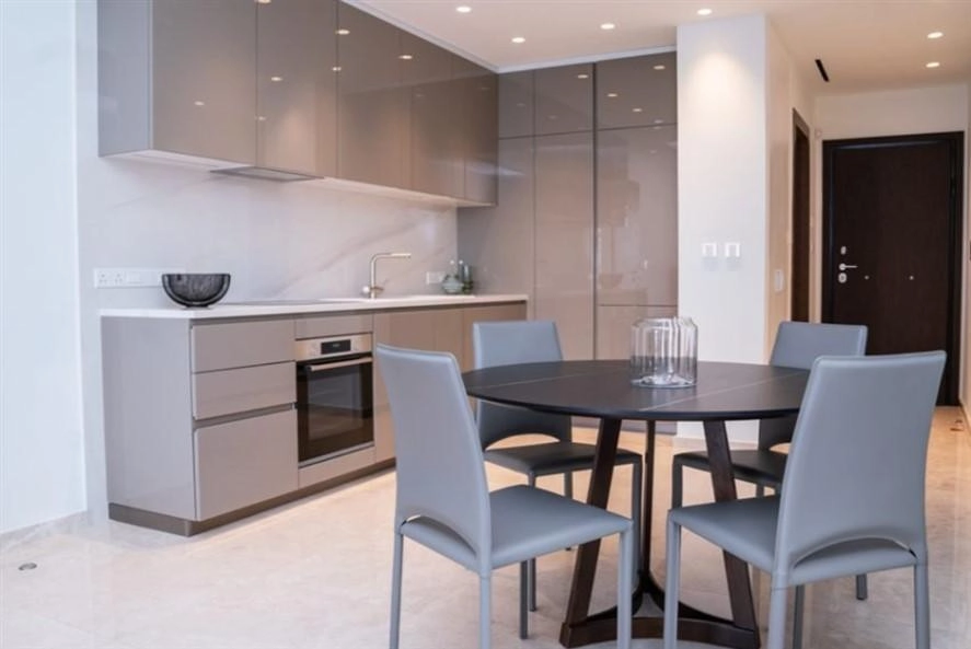 Situated high within one of Limassol’s most prestigious developments, this two-bedroom apartment offers 130 sq.m. of refined interior space with a clean, contemporary design. The open-plan living areas connect seamlessly to a spacious covered veranda—ideal for both everyday living and entertaining.