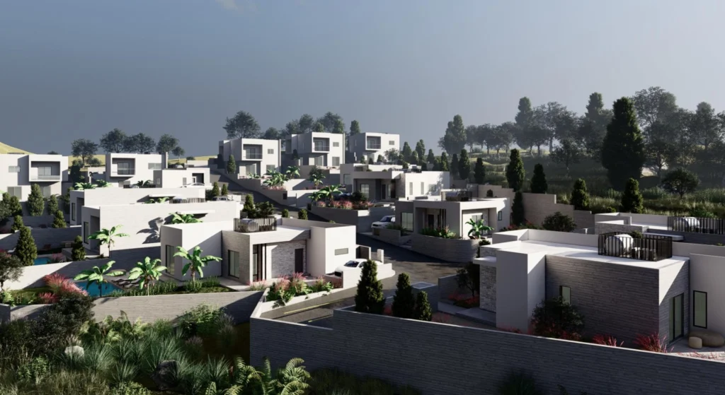 3 bedroom villa for sale in a new project in Pegeia, Pafos. The residence will have Energy Efficiency Class A. A large courtyard with a swimming pool and garden. Quiet area. Located close to all amenities and has easy access to the motorway and the sea. It is an ideal option for both living and investment. Split air conditioning systems are included in the bedrooms and in the living/dining room, including wiring, drainage and piping in accordance with EU standards. There is a parking space.