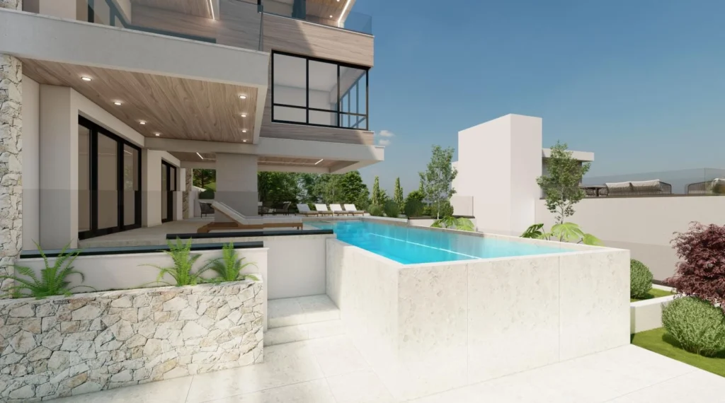For sale is a modern three-storey four-bedroom villa in the prestigious area of Agios Athanasios (Limassol). Beautiful view of the sea and the city, five minutes from the exit to the highway. A swimming pool and a barbecue area for outdoor recreation. It is fully equipped with air conditioning. Photovoltaic system to save energy, as well as double windows. Elevator from the parking lot to the roof garden. Spacious parking for 4 places. Delivery to the owner 16 months after signing